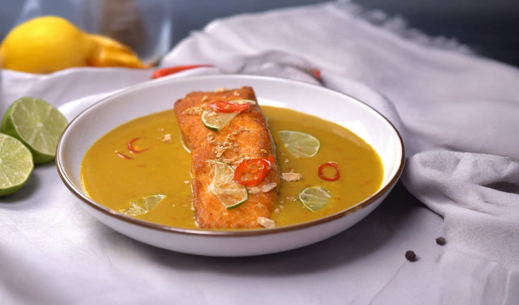 This Thai Curry Sous Vide Salmon combines the precision of sous vide cooking with the vibrant, aromatic flavors of Thai cuisine. Salmon steaks are seasoned and vacuum-sealed with lemon, ginger, and chili, then cooked sous vide at a low temperature for one hour to ensure perfect tenderness. After sous vide cooking, the salmon is pan-fried for a crispy exterior and served with a fragrant Thai curry sauce made from garlic, ginger, lemongrass, curry powder, and turmeric. This dish offers a delicious balance of tender, flaky salmon and bold, spicy curry flavors, perfect for a gourmet meal at home.